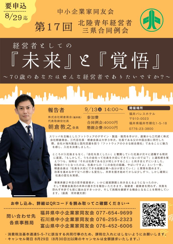朝倉会員の等身大の実践報告から、関わる皆さんにとって“明日を動かす学びの機会”を創ります。県境を越えて学び合い、高め合い、挑戦する文化を築くことで、一社では届かない価値創造にきっと手が届きます。今日ここで交わる一言、一握りの縁を北陸へ掴みに来てください!!